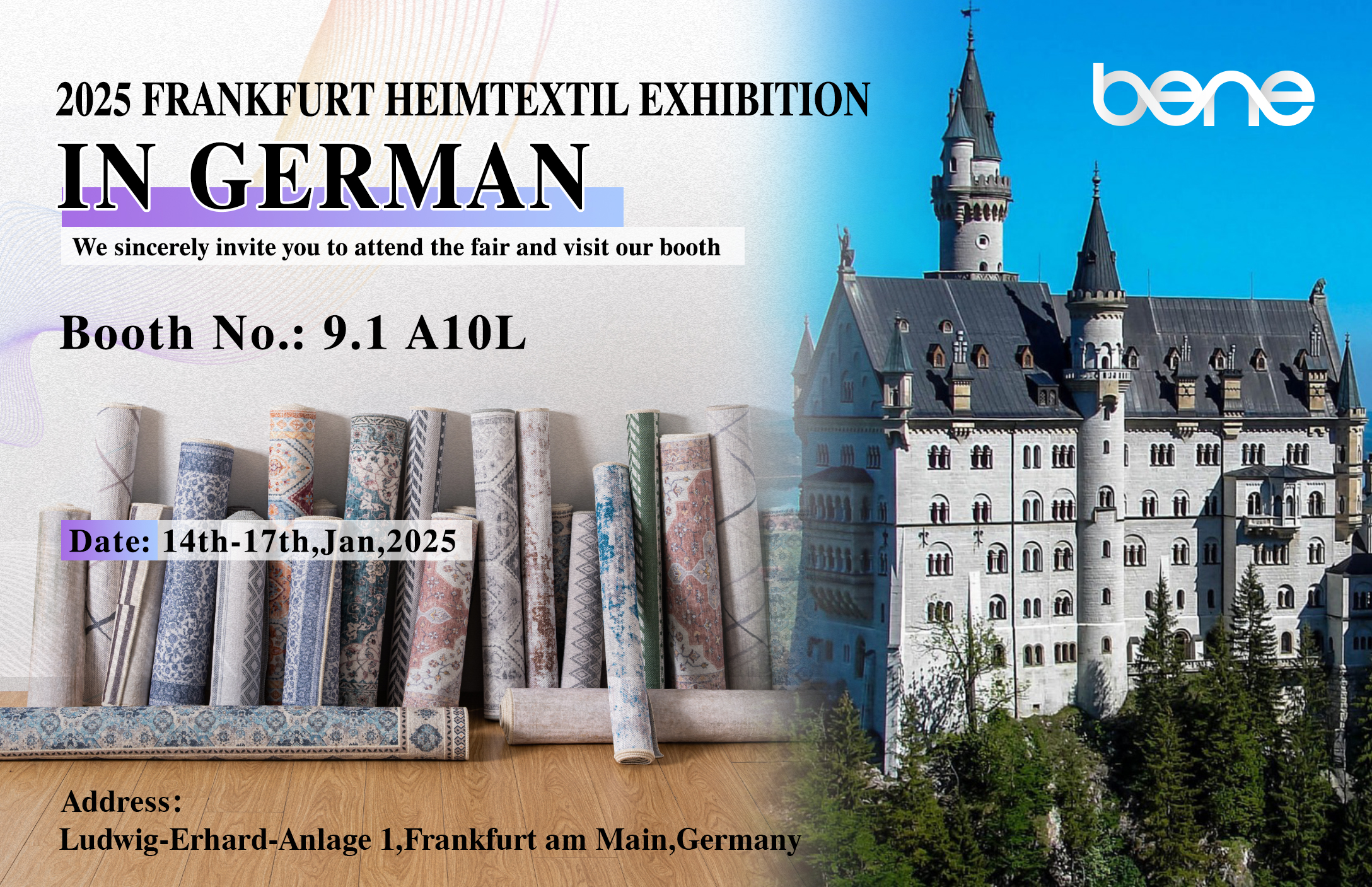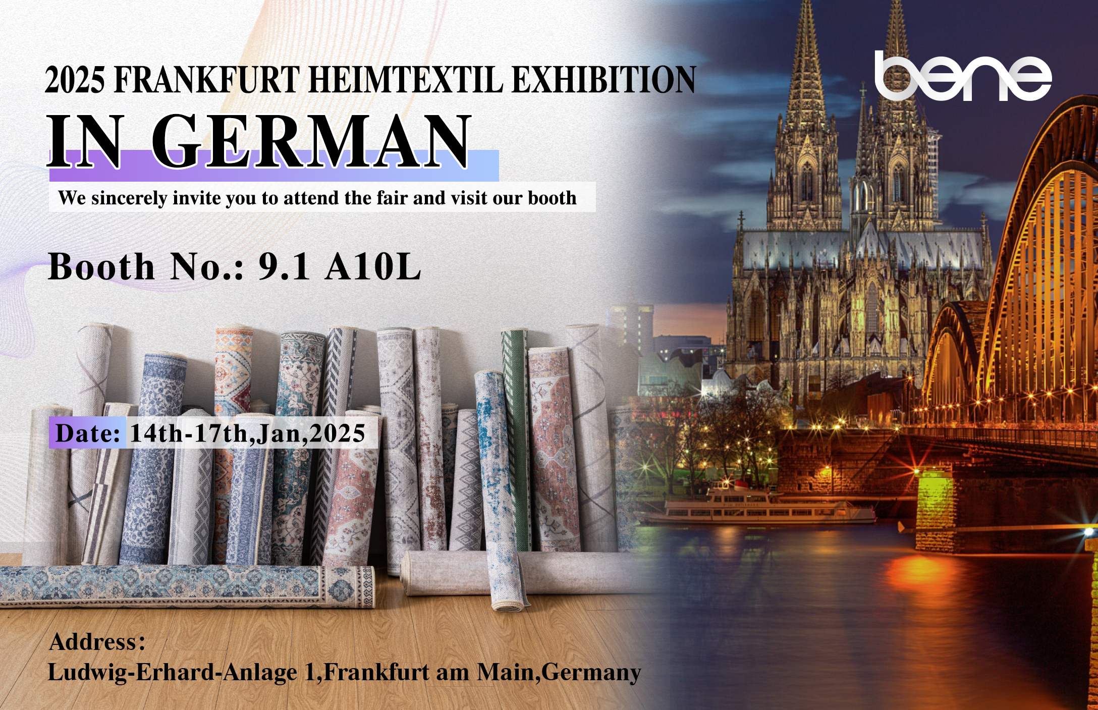 বেনি টেক্সটাইলে, আমরা বিশ্বব্যাপী গ্রাহকদের সেরা কার্পেট এবং হোম টেক্সটাইল সমাধান সরবরাহ করার জন্য প্রচেষ্টা করে "উদ্ভাবন, টেকসই, গুণমান" এর দর্শন মেনে চলি। 2025 ফ্র্যাঙ্কফুর্ট হিমটেক্সটিল প্রদর্শনীটি আপনার জন্য আমাদের সর্বশেষ পণ্য এবং প্রযুক্তিগুলি আবিষ্কার করার জন্য উপযুক্ত সুযোগ এবং আমরা অধীর আগ্রহে আপনার ভ্রমণের অপেক্ষায় রয়েছি।