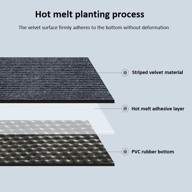এর শক্ত রঙের প্যাটার্ন এবং আয়তক্ষেত্রাকার আকারের সাথে, পিভিসি ডাবল স্ট্রাইপ ডোর মাদুর উভয়ই আড়ম্বরপূর্ণ এবং ব্যবহারিক। এটি বজায় রাখা সহজ, এর জল ধোয়া যত্নের নির্দেশাবলীর জন্য ধন্যবাদ, এটি নিশ্চিত করে যে এটি সময়ের সাথে পরিষ্কার এবং কার্যকরী রয়েছে। আবাসিক বা বাণিজ্যিক ব্যবহারের জন্য, এই দরজার মাদুর নির্ভরযোগ্য পারফরম্যান্স সরবরাহ করে, সহজ রক্ষণাবেক্ষণ এবং একটি মসৃণ ডিজাইনের সাথে দুর্দান্ত জল শোষণের সংমিশ্রণ করে